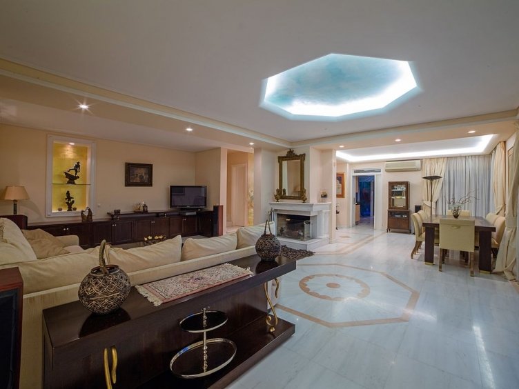 Light walls blend harmoniously with unique pieces of furniture, the marble and the various decorative elements.